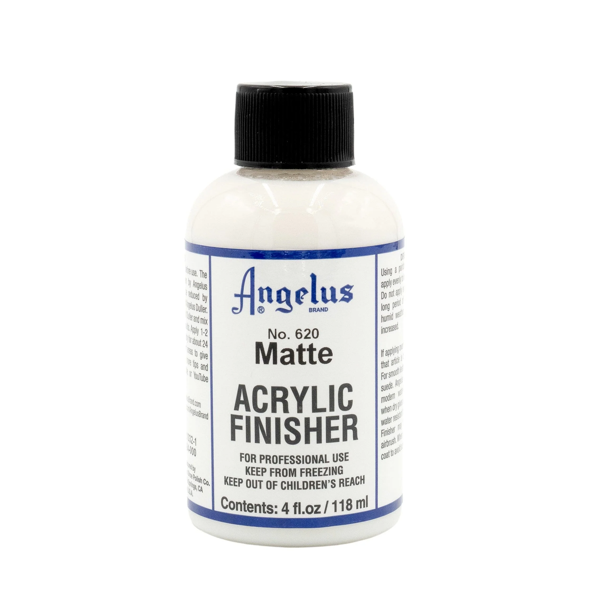 Angelus Acrylic Finisher is used on all smooth leathers. It is excellent for hand crafted work or high speed production. Just apply with a sponge, rag, sheep's wool, or spray gun, and let dry. No buffing is needed. This water-based product cleans up with soap and water. When dry, the Acrylic Finisher is water-resistant, and will not rub off, crack, or streak. It is flexible enough for shoes, belts, handbags, luggage, saddlery, and tack equipment. It can also be used on gourds or anything needing a clear finish. If you want a beautiful flat top finish we will recomand the Polymer mat varnish from Golden. If you want this one instead the Angelus please leave us a message. We will swap the finishers.