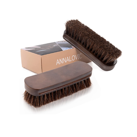 Annalovic 2 PC Horsehair Shoes Polish Brushes Care Cleaning Daubers Applicators for Shoes
