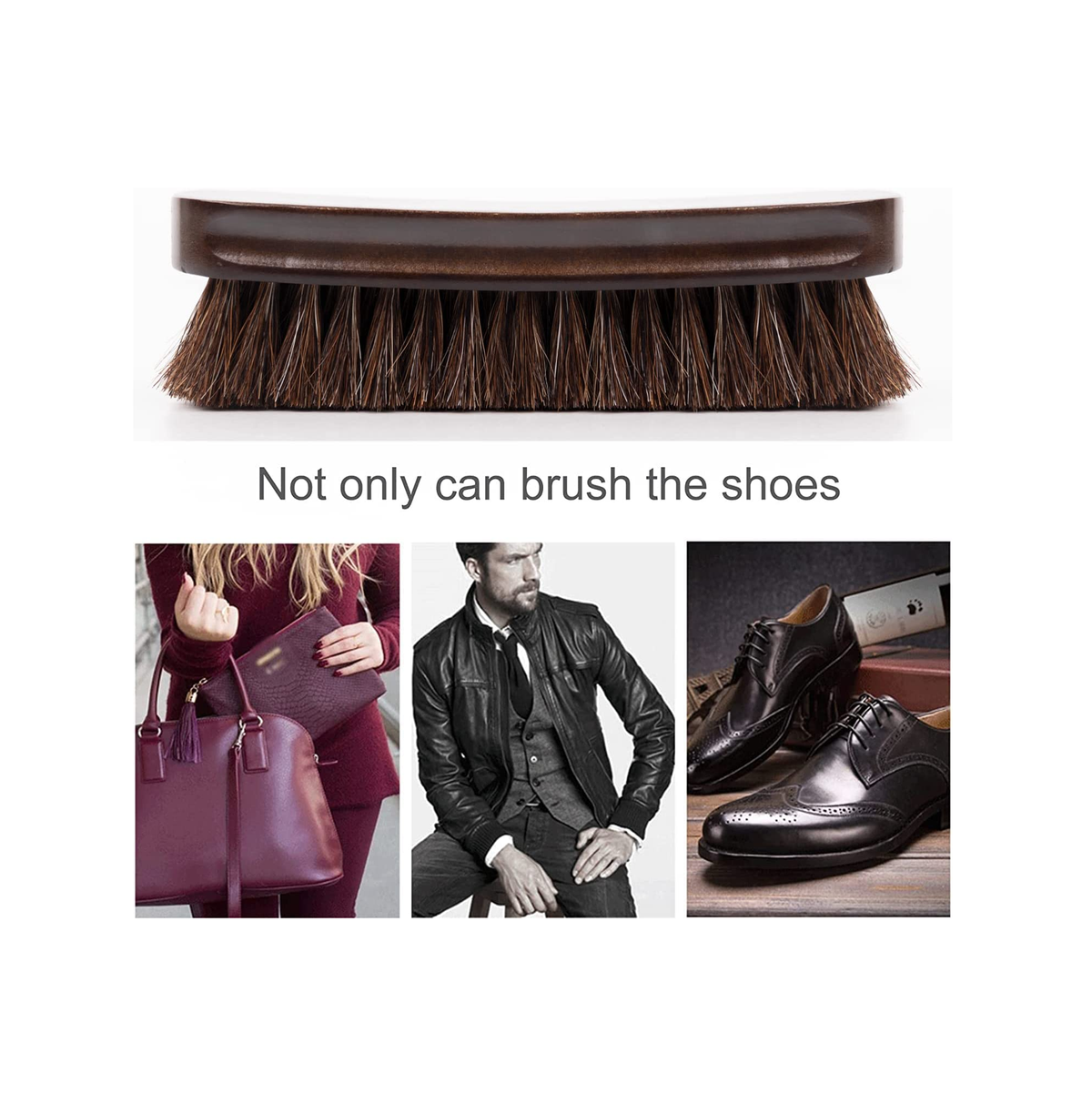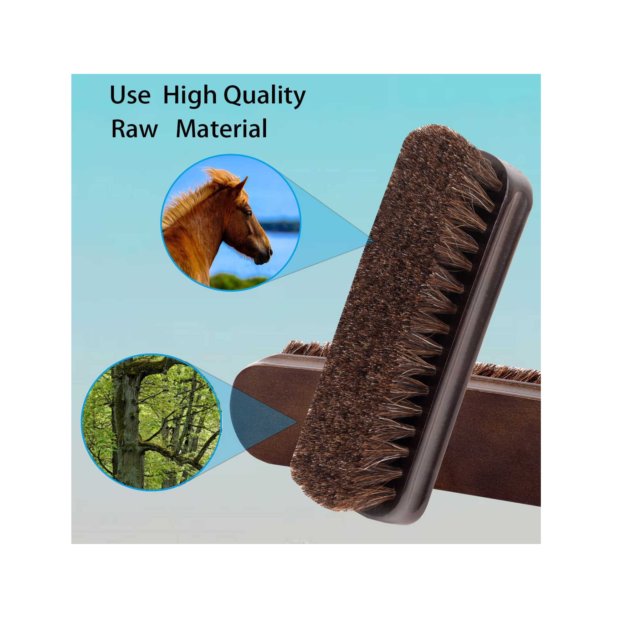 - Material: the shoe brush is anti-static, it consists of natural horse hair and beech wood, the hair is with moderate soft, the wood is tough and durable, it provides efficient care and comfortable use