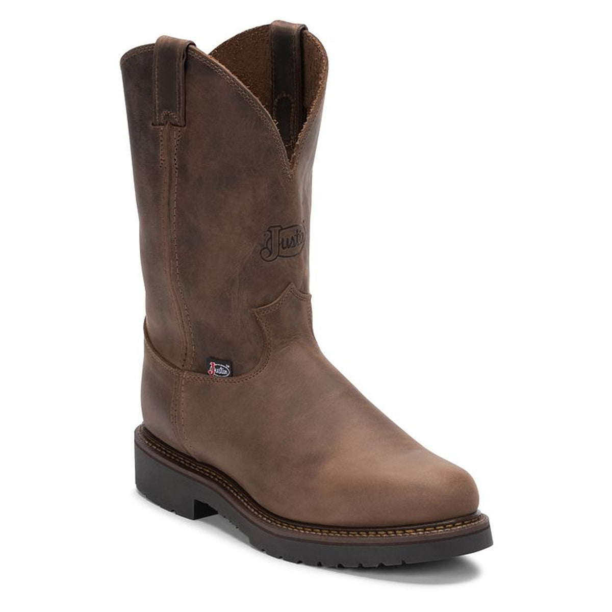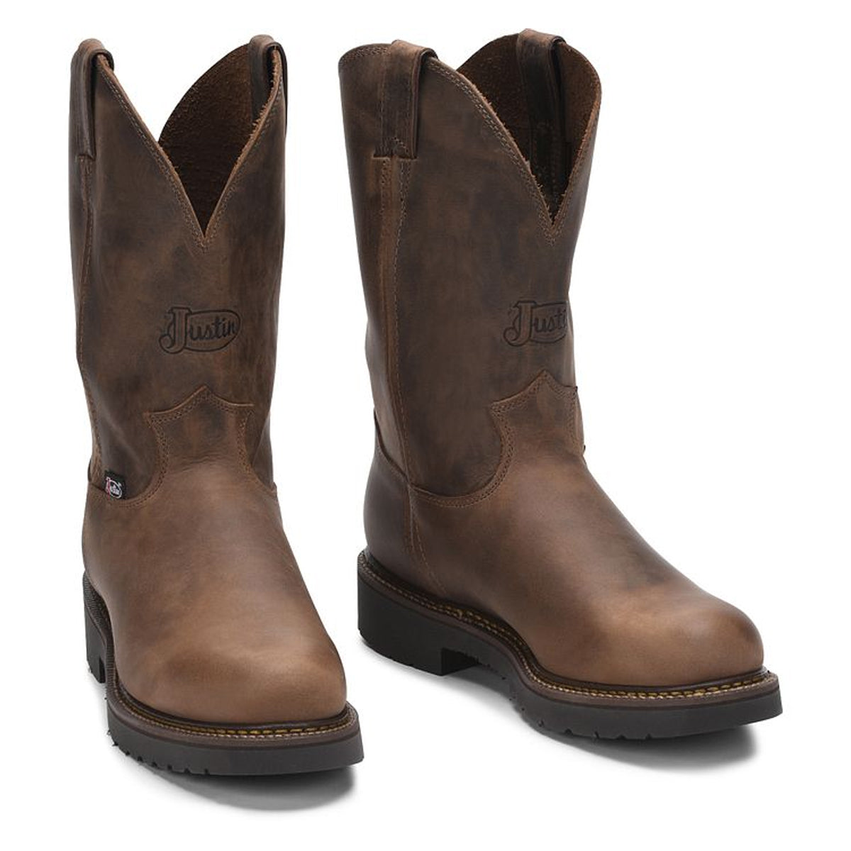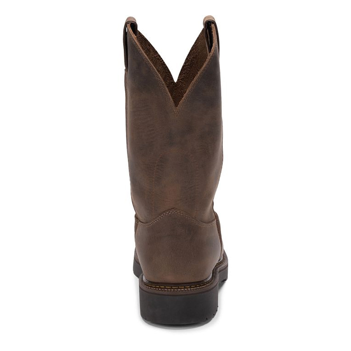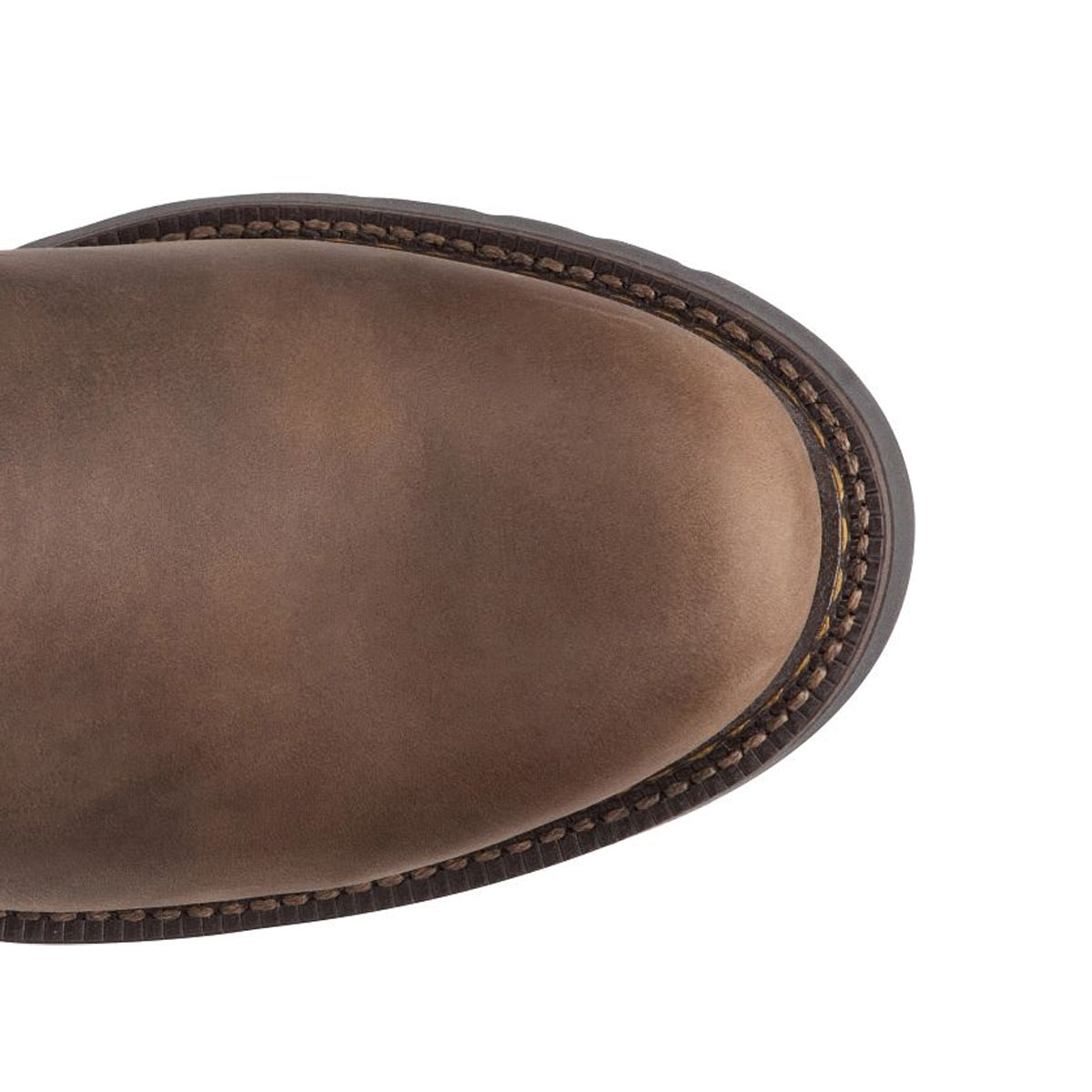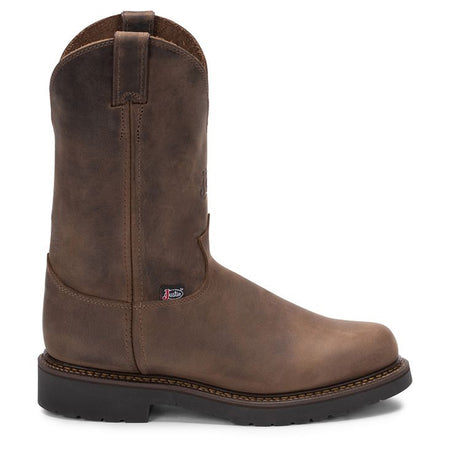 The Balusters Bay Gaucho, 11" tall J-Max men's pull-on work boot features a rich brown leather exterior crafted for durability.