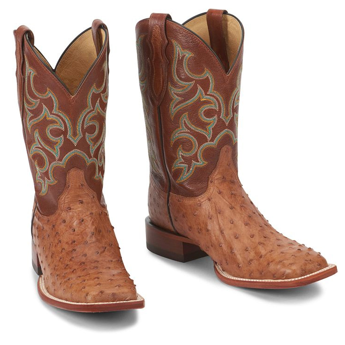 Justin Back Men Footwear Wester Exotic Truman 11" full Quill Ostric Color Cognac (#8516)