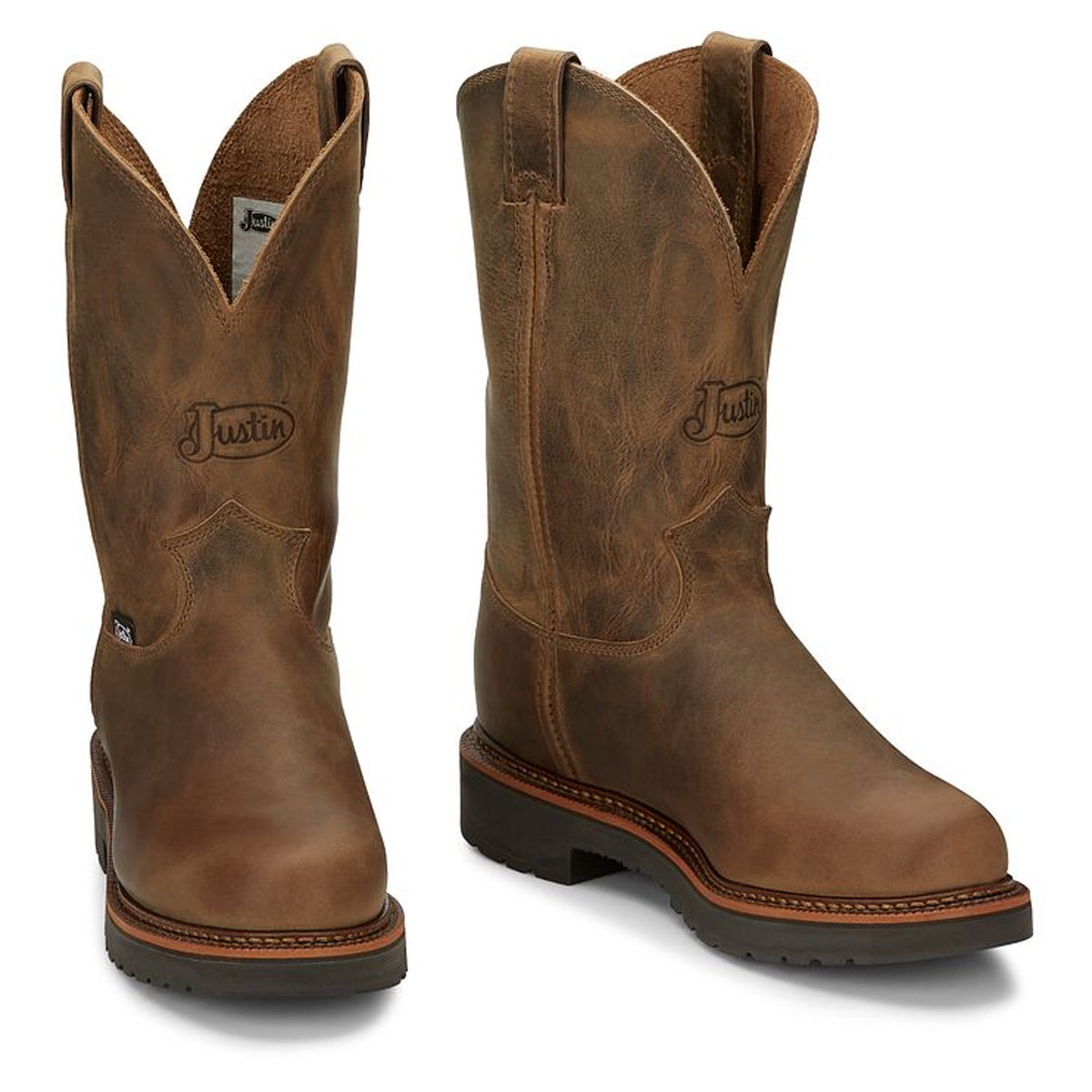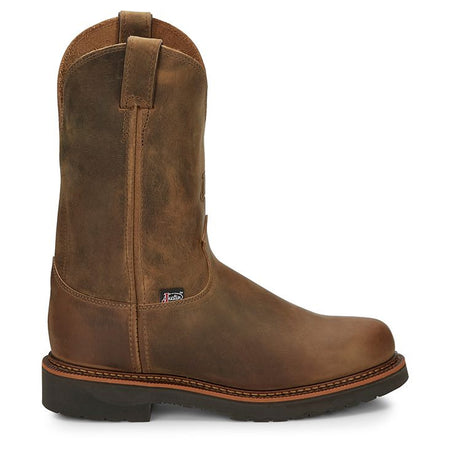 It's built for comfort with the J-Max® Double Comfort System that utilizes a mesh spacer foot bed cover that provides extra comfort and a healthy environment for the foot and the J-Max® removable orthotic inserts with J-Flex Flexible Comfort System with Justin Jel offers a multi-density polyurethane foot bed including low-density foam to cushion initial impact and provide energy return as you walk. The encapsulated air cells to virtually eliminate compression set so the bounce of cushioned energy return is present for the life of the boot strategically placed polyurethane gel pads in the heel arch and ball area to reduce muscle fatigue for unparalleled comfort. This boot also features the Dri-Lex cooling system that wicks moisture away from the foot, leaving the insole dry and cool as well as a durable dual-density polyurethane slip resisting outsole. This boot meets ASTM F2892 safety footwear standards.
