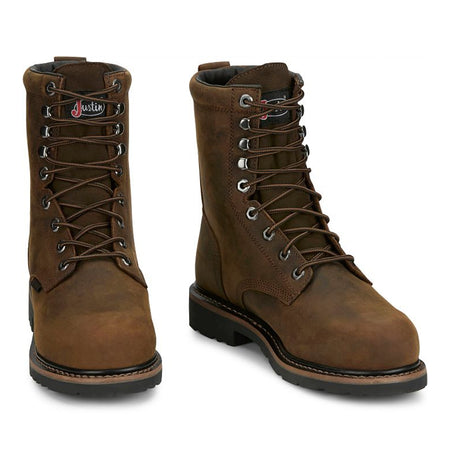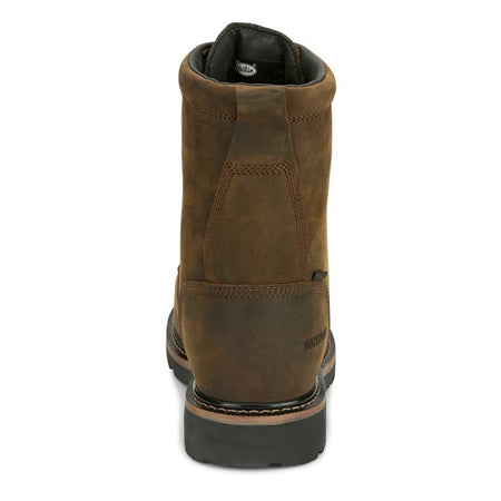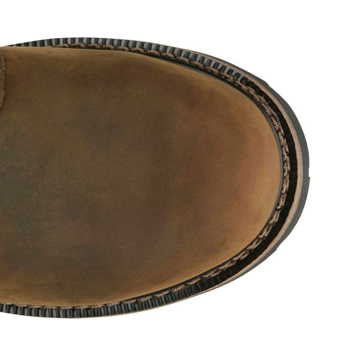 Take on the work day in the 8" tall Pulley NanoComposite Toe Men's work boot with a distressed waterproof leather exterior and Met Guard protection.