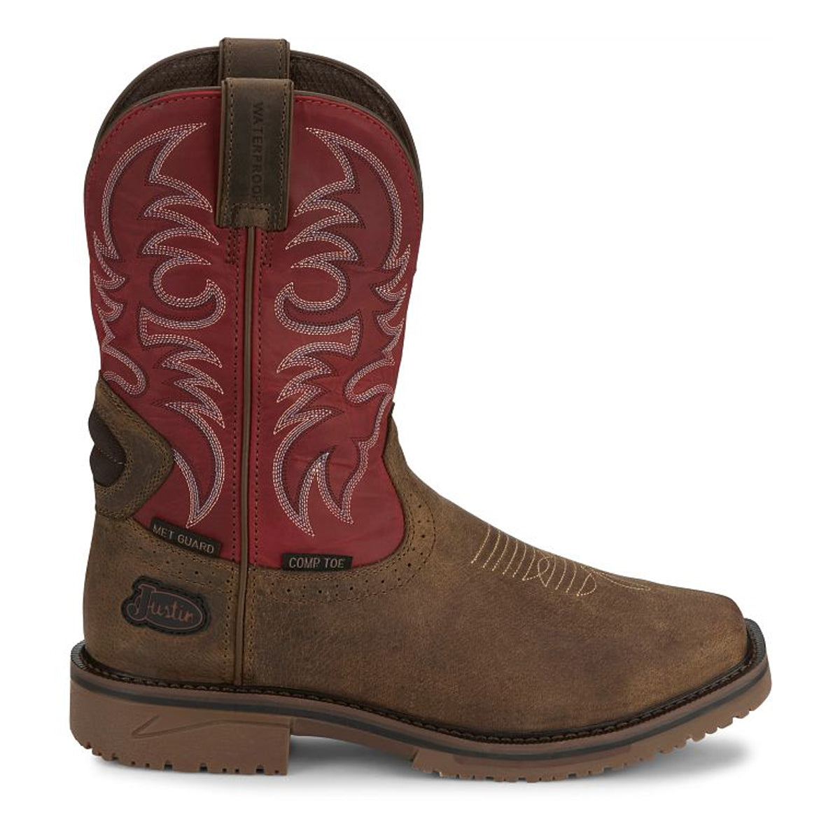 Justin Back Men Footwear Work Pull-One Thorn 11" Waterproof Met Guard Comp Toe Color Peanut (#SE4753)