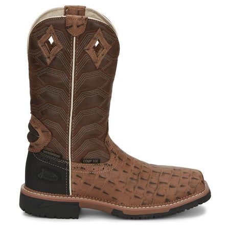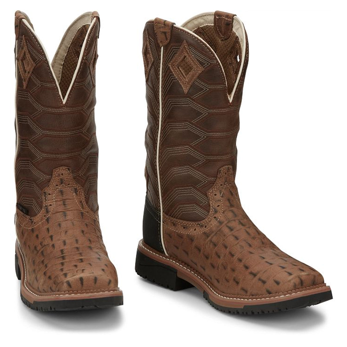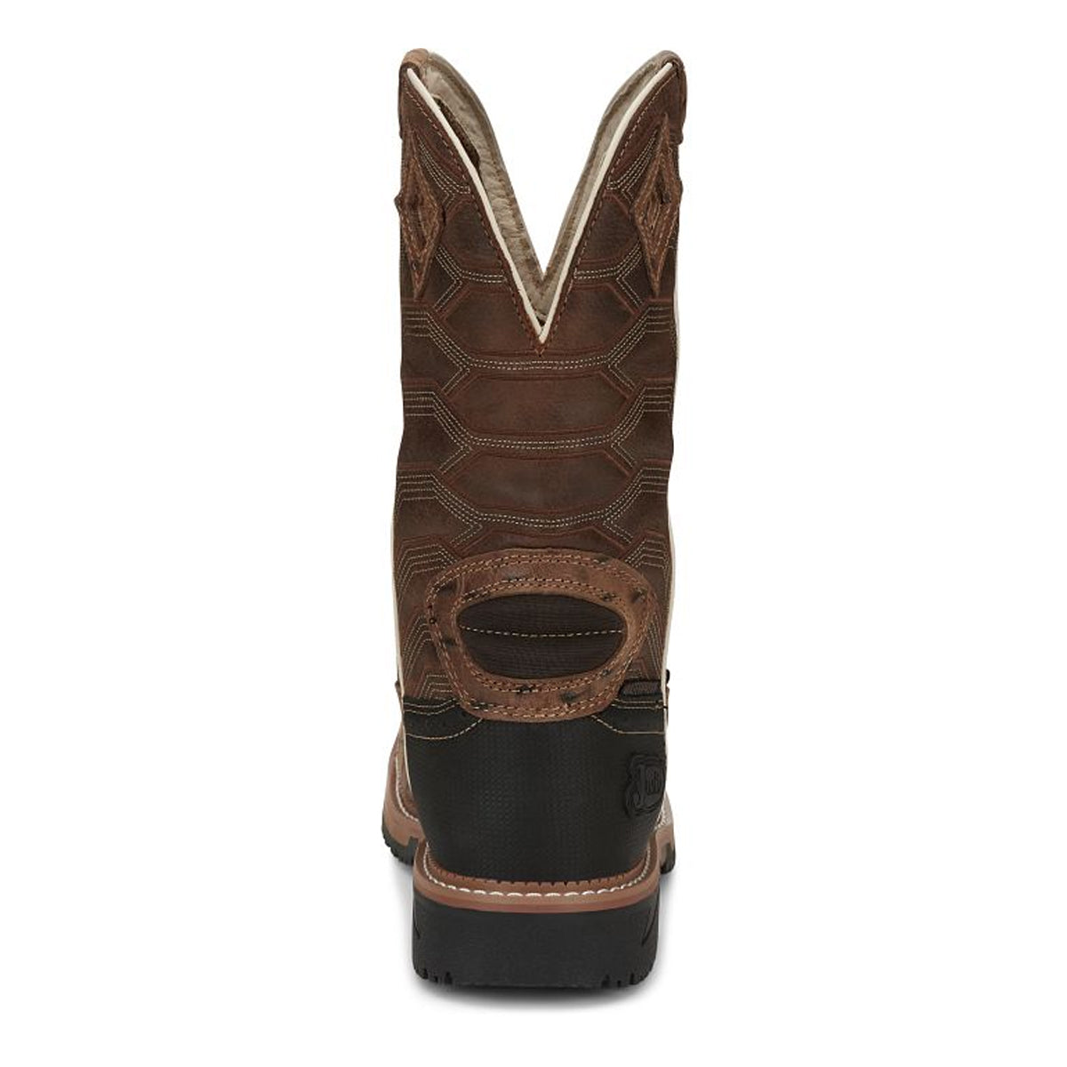 Inside, this boot features layers of comfort with a J-Flex Flexible Comfort Syste insole, the Justin Stabilization Technology, Ortholite Comfort Foam insole, and a Dri-Lex cover. Its multi-density rubber and EVA combination outsole offers lightweight durability. This boot also provides an Achilles Relief System that eliminates weak spots in foot comfort by using stretchable material, high-density foam, and moisture-wicking anti-microbial lining to provide flexibility, support and breathabilitythe Hybred® Orthotic insole provides all-day comfort. This boot meets ASTM F2892-11, EH safety footwear standards.