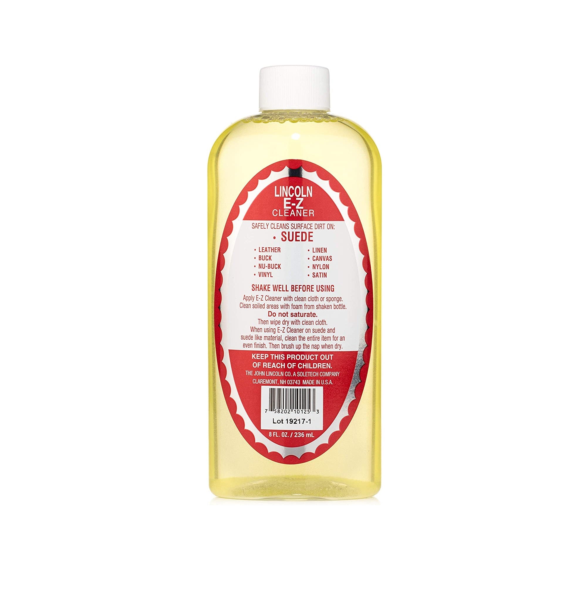 E-Z Cleaner is the Original E-Z Cleaner. It is ideal as an "all purpose," non-solvent cleaner for suede, leather, fabric, and like materials. E-Z Cleaner is strong enough to remove grease marks from suede, and salt stains from leather. Use it like a suede shampoo. Make a foam using a sponge to easily remove dirt from shoes and other leather articles