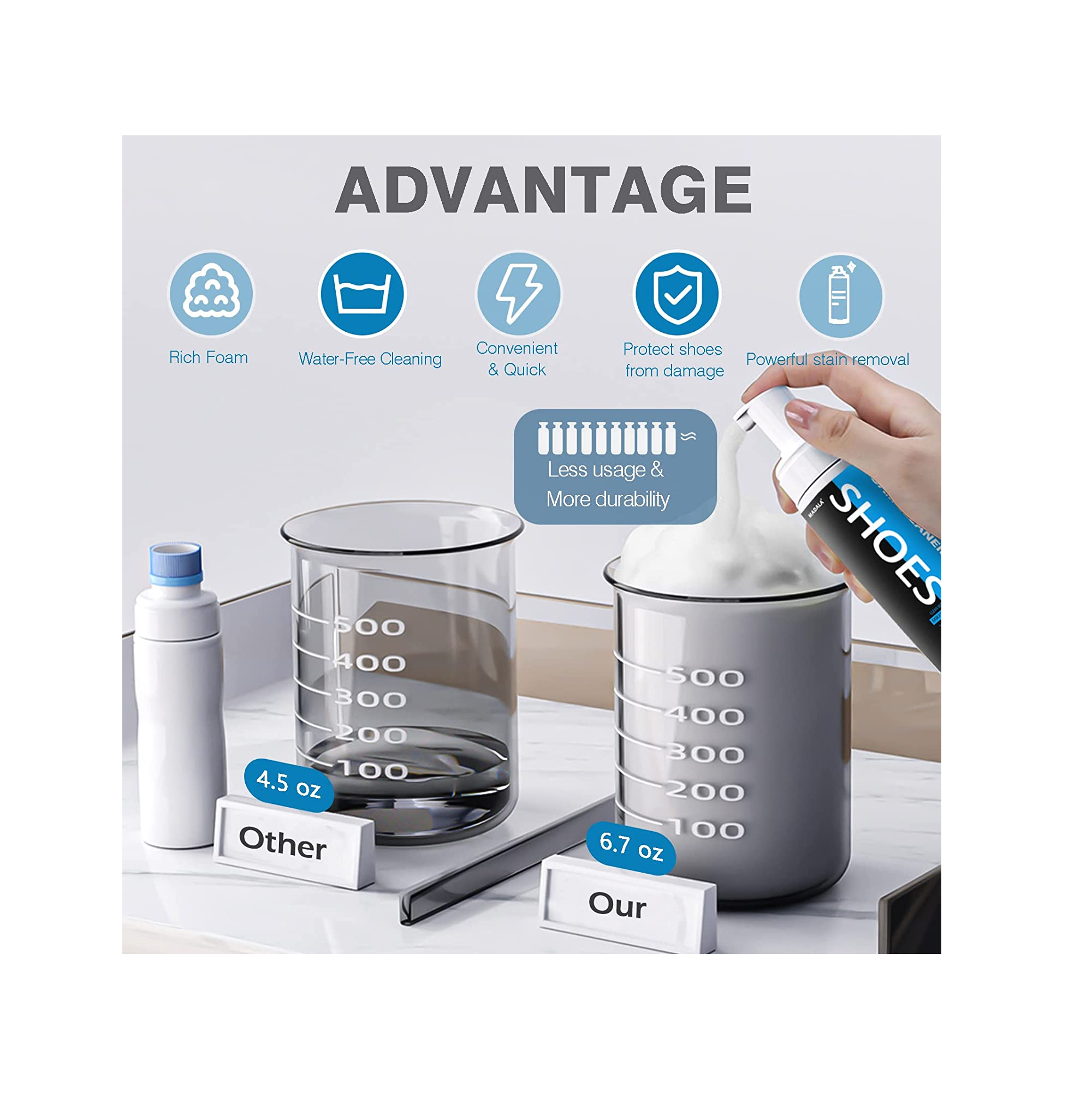 - PREMIUM CLEANING SOLUTION – Our best-selling Premium Shoe Cleaner effectively cleans and conditions without harsh chemicals or abrasives. A little goes a long way as the 6.7 oz. bottle will clean up to 200 pairs of sneakers!