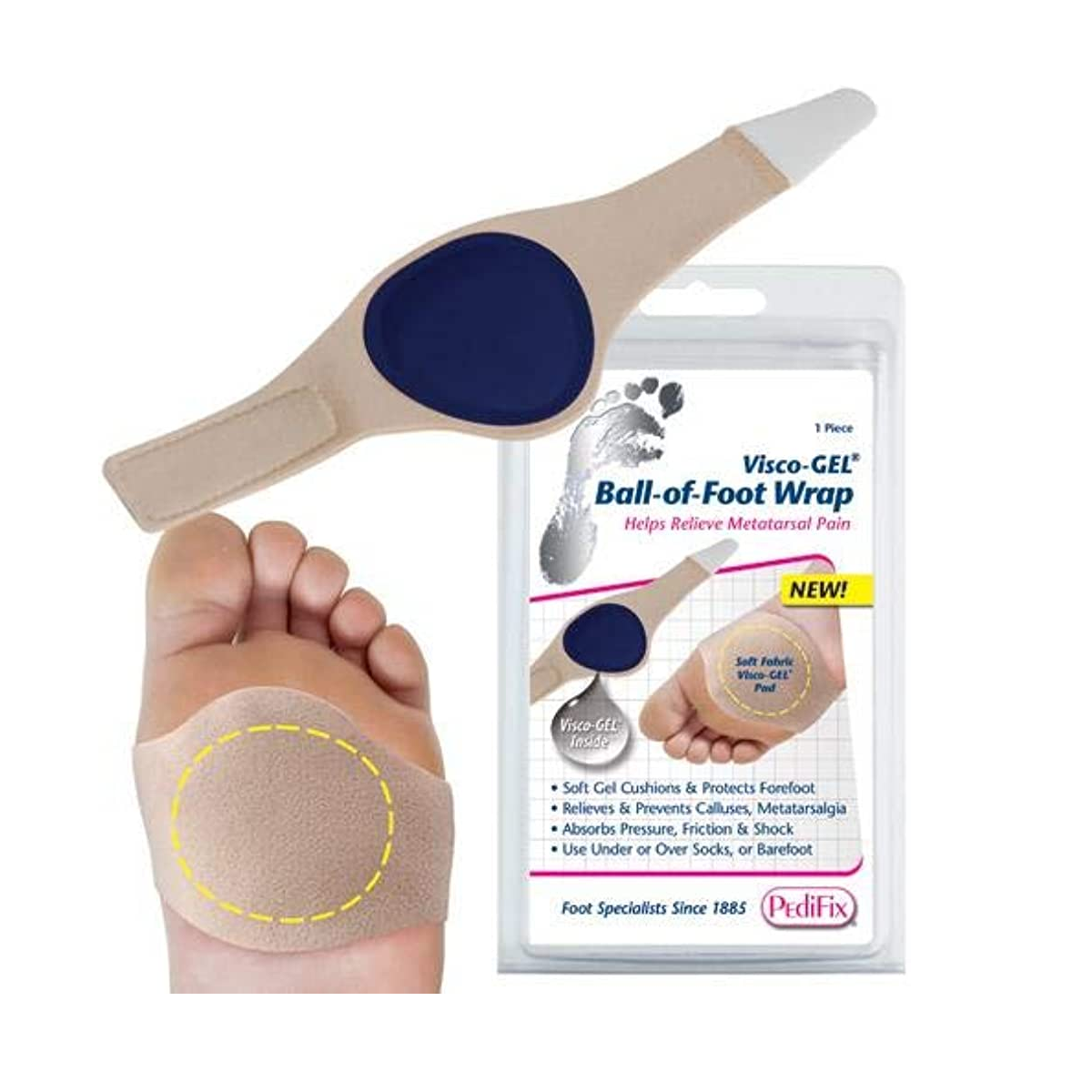 PediFix Visco-GEL Ball-of-Foot Wrap includes stretchable nylon fabric that positions a soft, silicone Gel pad that cushions and protects the forefoot area. Helps relieve ball-of-foot pain, metatarsalgia, calluses and fat pad atrophy. Designed for wear under or over socks. Thin profile fits comfortably in most footwear. PediFix Visco-GEL Ball-of-Foot Wrap is washable and reusable for months. Adjustable. Interchangeable — fits right or left foot. Small fits Narrow feet. Large fits Wide feet.