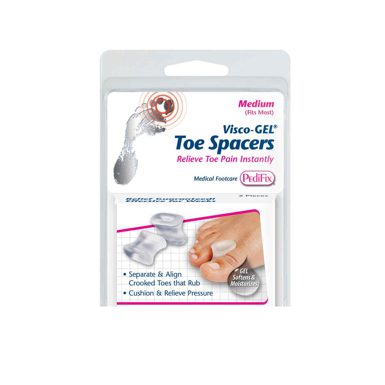 The pedifix VISCO-GEL Toe Spacers absorb friction and pressure to prevent chafing, align releases and crooked toes and ease pressure on the separated joint splint. Gel mineral oil and vitamin E for the skin soothe, soften and moisturize. For over 120 years, Pedifix has been meeting the needs of customers, helping doctors and using the latest technologies to develop unique and innovative foot massager items. Our high-performance solutions have helped millions of people ease pain, prevent future problems, wear shoes more comfortably and make their feet more attractive. cushion and relieve pressure guaranteed relief effective for weeks Relieve foot pain instantly