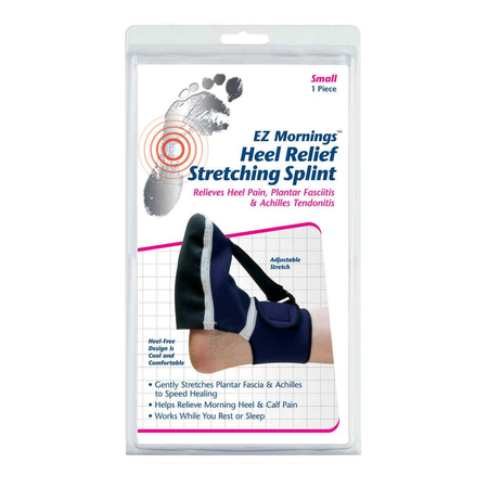 ‘Plantar Fasciitis’ is the medical term for pain that results from strain and microscopic tearing of the plantar fascia ligament on the bottom of the foot. One common symptom of this condition is sharp heel pain upon arising in the morning (because the ligament contracts during the night). Worn while resting or sleeping, the PediFix EZ Mornings Heel Relief Stretching Splint stretches the fascia continuously to minimize morning pain and help speed healing. Adjustable stretch.