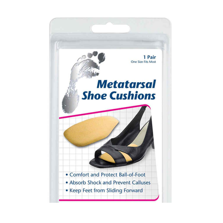 Just place the PediFix Metatarsal Shoe Cushions in shoes to instantly absorb shock and reduce pressure on the ball-of-foot area. Adhesive-backed pads help prevent calluses and stop feet from sliding forward in shoes. Extra protection for thin-soled footwear.