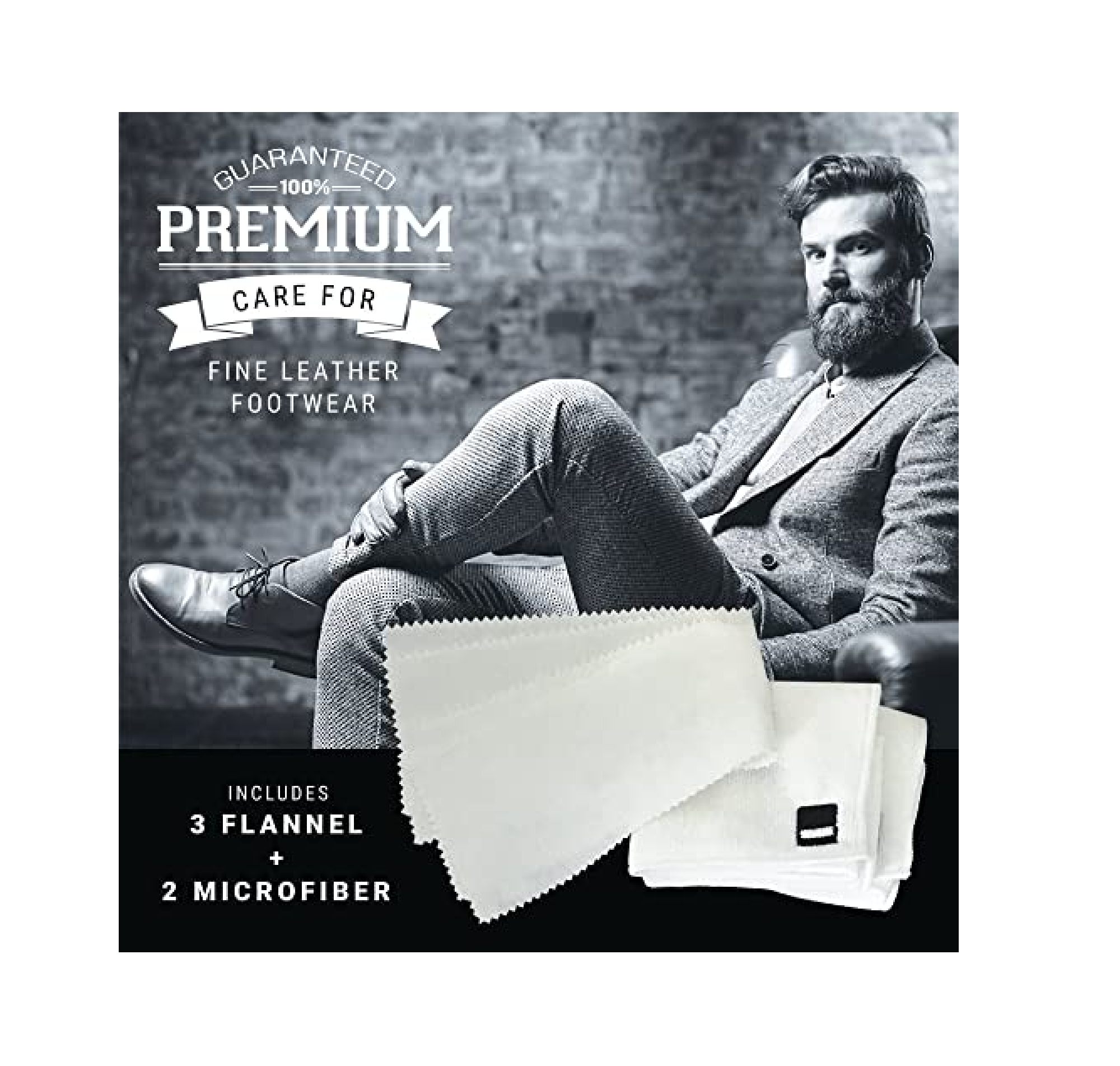 Premium Set Shoe Shining Cloths 3 Flannel & 2 Microfiber Best for Buffing Cleaning & Polishing Leather