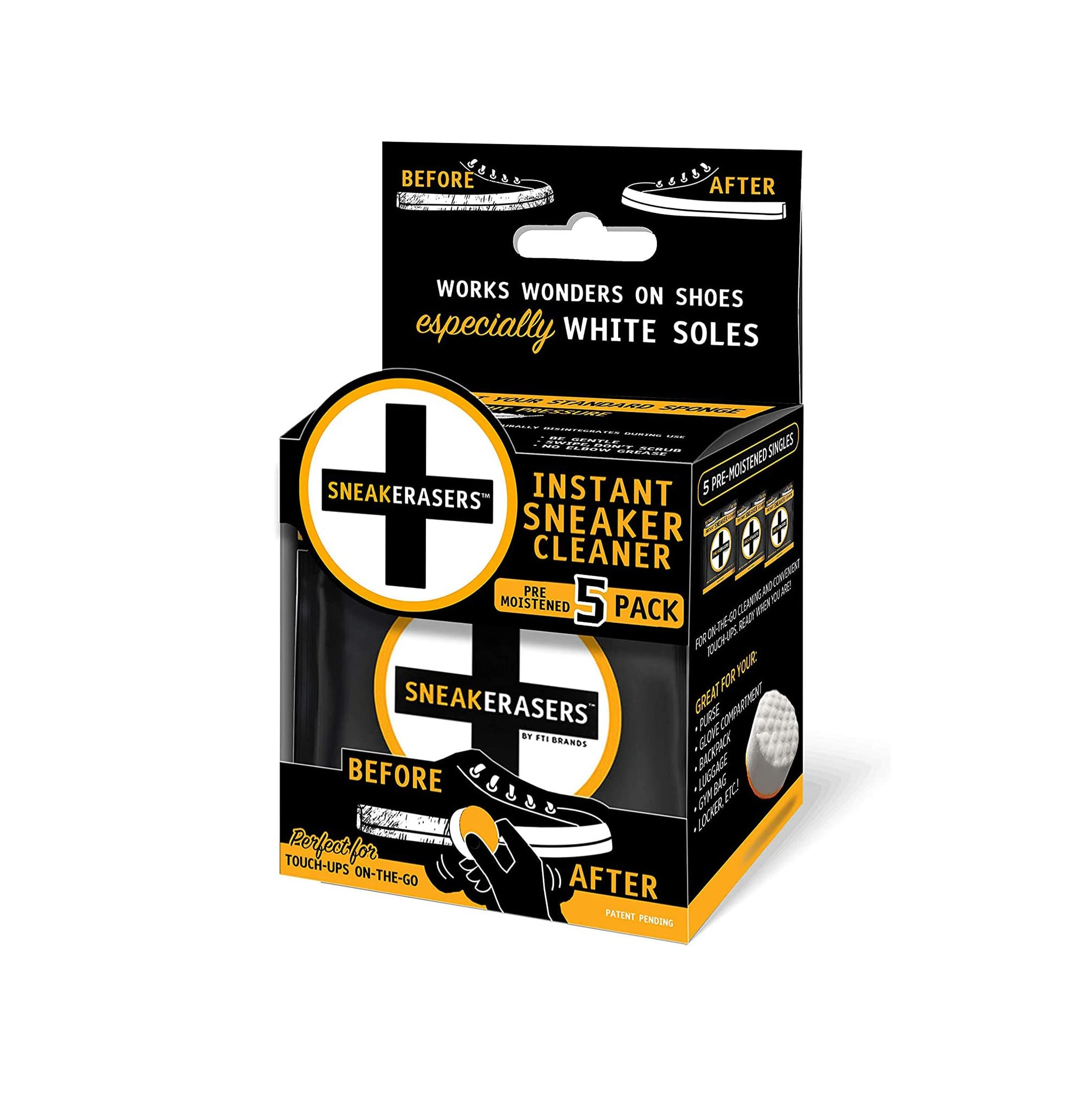 SneakERASERS Instant Sole and Sneaker Cleaner Premium Pre-Moistened Dual-Sided Sponge for Cleaning & Whitening Shoe Soles 5 Pack