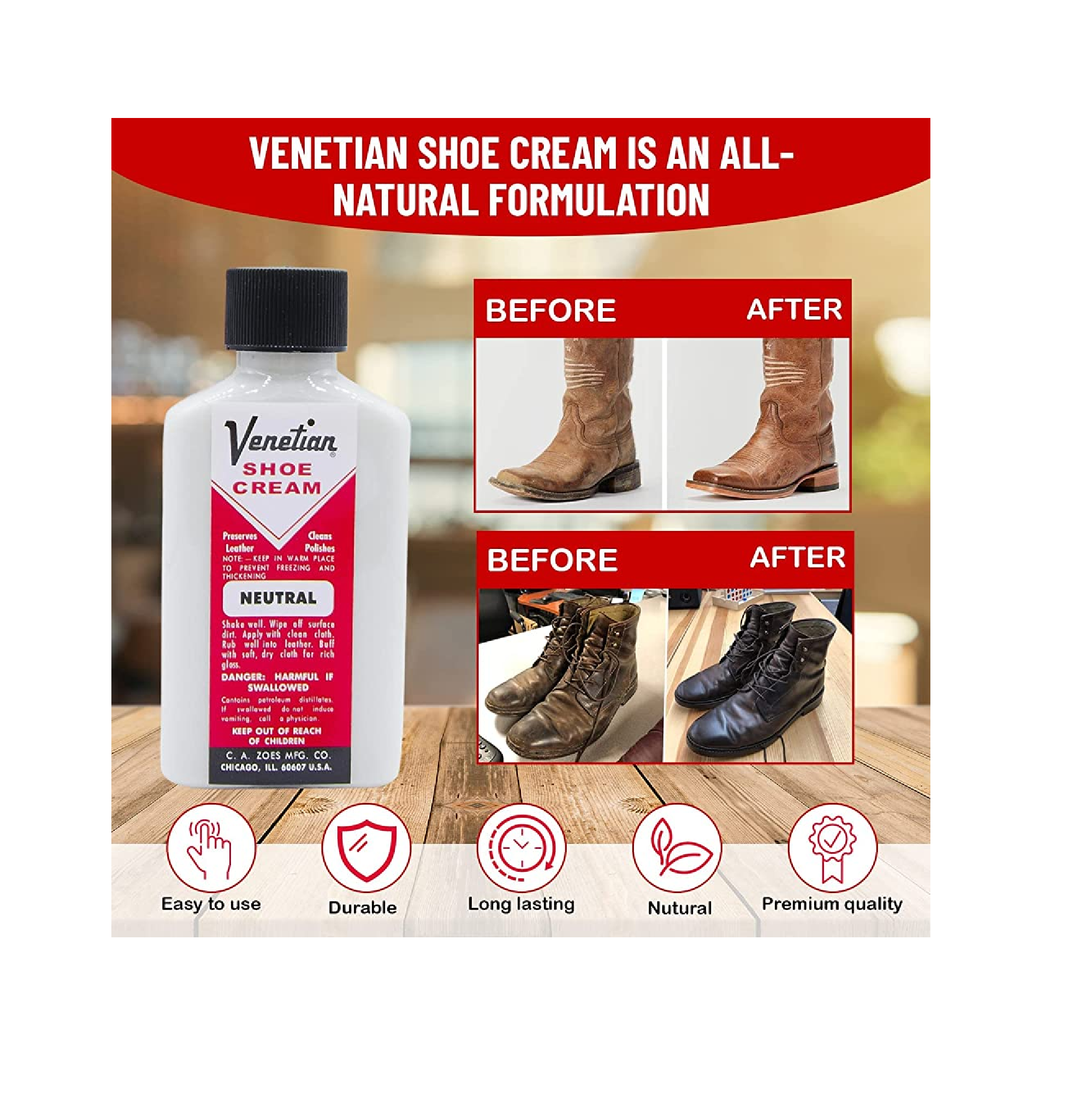 - MADE IN USA: Venetian Shoe Cream has proudly been serving you with amazing, high quality, Shoe care products since 1907. We use only the best ingredients and never take shortcuts. We still take pride in that today after 3 generations